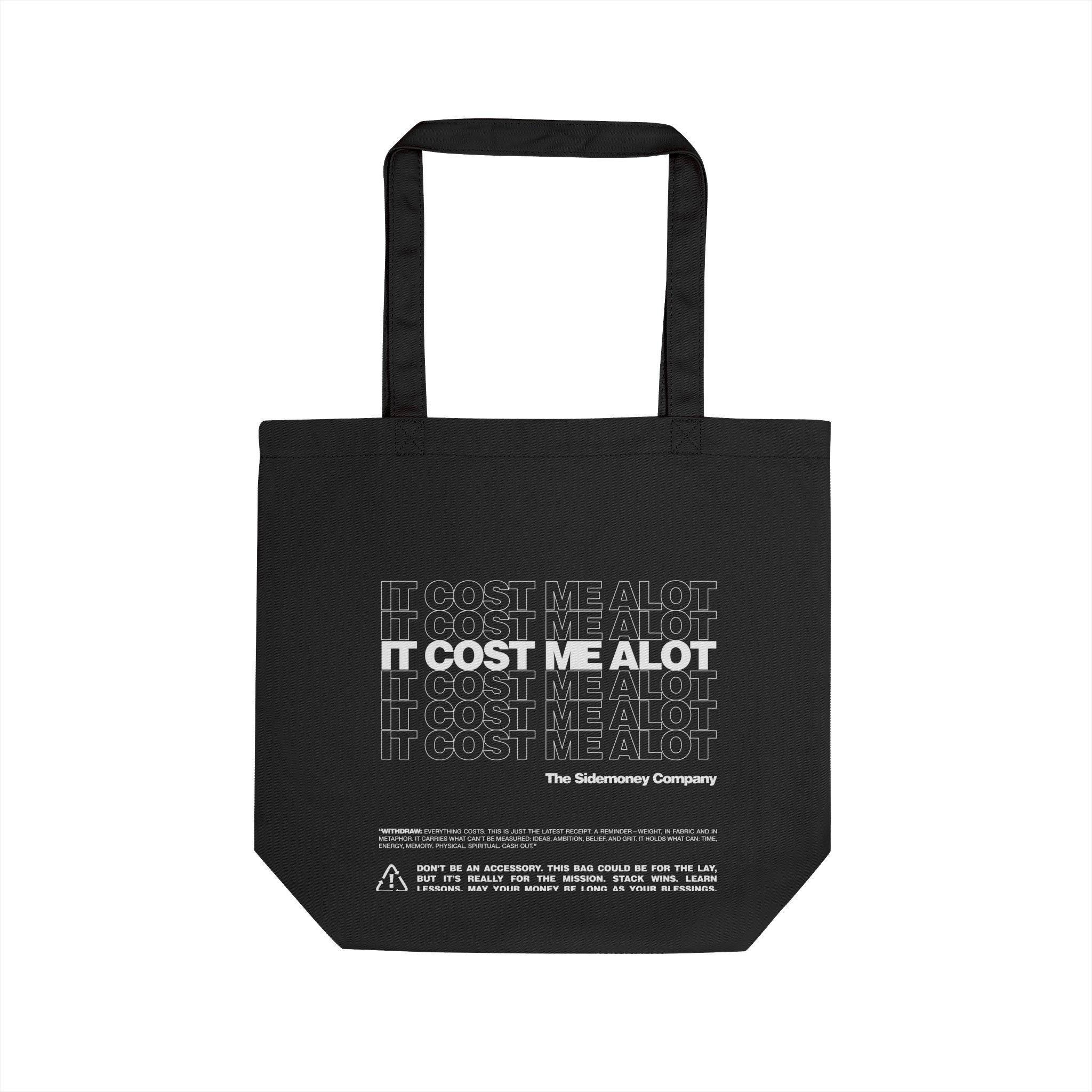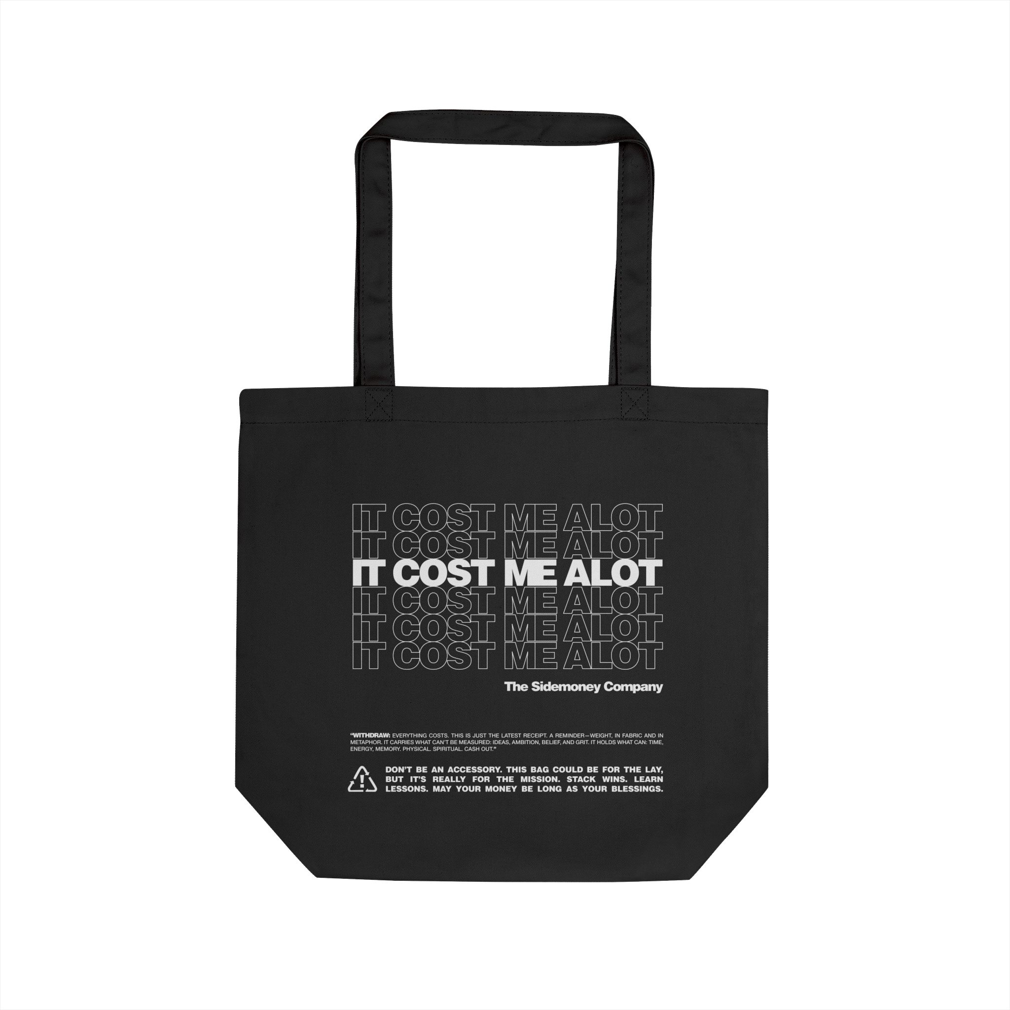 The “It Cost Me A Lot” tote bag from Sidemoney is more than a carryall. It’s a statement on resilience, class, and the danger of judging by appearance. Crafted from durable cotton for everyday use, it’s built to move through real life. The phrase printed on the bag is intentionally open ended. It could reference the tote itself, what’s inside it, or the person carrying it. It speaks to the unseen costs behind ambition and survival, and challenges the assumptions we make about value, wealth, and worth. Rooted in Sidemoney’s ethos, this tote acknowledges that not everything expensive looks expensive, and not every struggle is visible. It’s a reminder that everyone is carrying something, and it all costs something.titude.