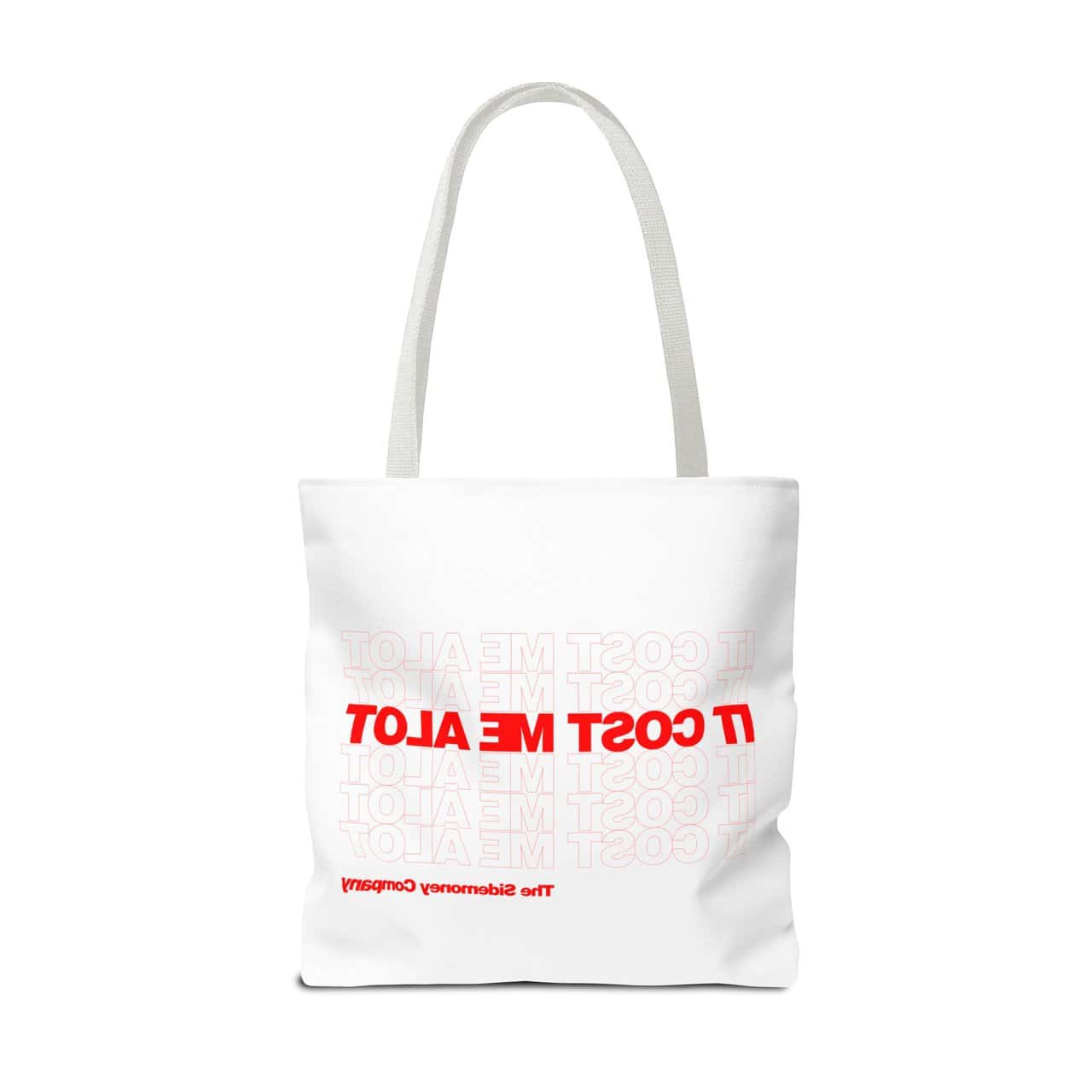 This version of the tote was a no brainer. Inspired by the classic “thank you” food bag, we created this rendition before anyone else could. It’s not just about carrying your things, it’s a reflection on the hidden costs behind every achievement, possession, and choice. Whether it’s the bag itself, what’s inside, or the unseen sacrifices made along the way, this piece asks what we really pay for in life.