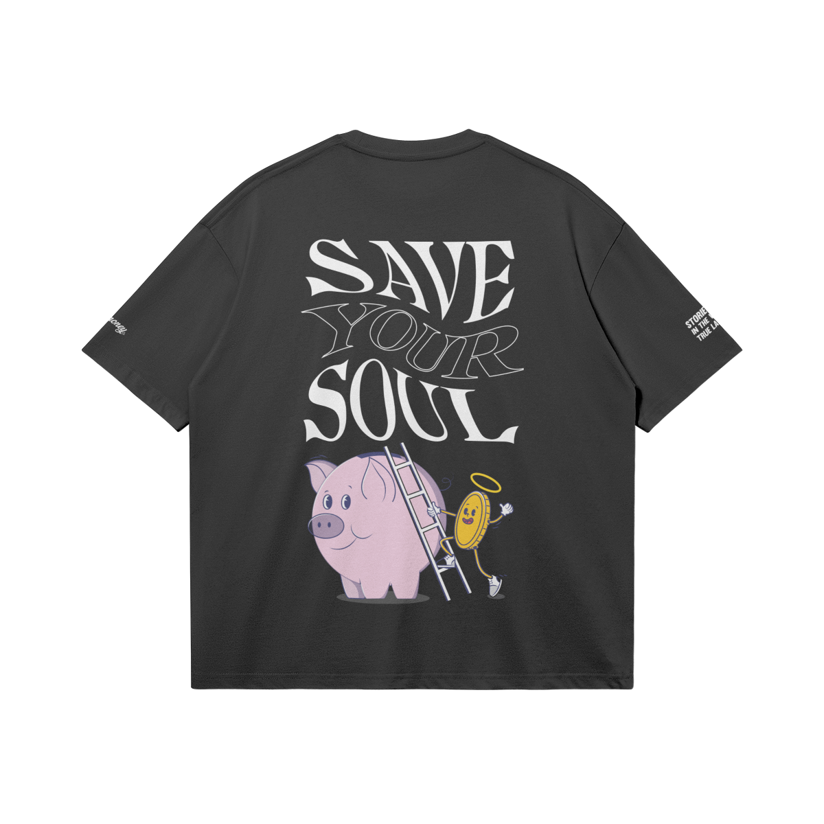 Save Your Soul plays on a familiar phrase with a truth that cuts deeper. The design shows a smiling coin climbing into a piggy bank, connecting the act of saving money with protecting your spirit. It’s a reflection on value beyond currency, a statement that not everything worth keeping has a price. Every deposit is a decision, every dollar a reflection of care. Sometimes the real flex is keeping something for yourself.